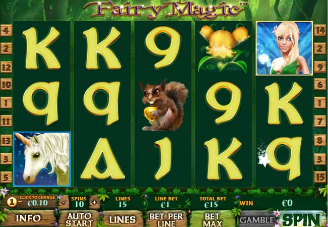 Fairy Magic offers 15 paylines across the 5 reels. Great graphics in this fairytale land of unicorns, dwarves and toadstools.